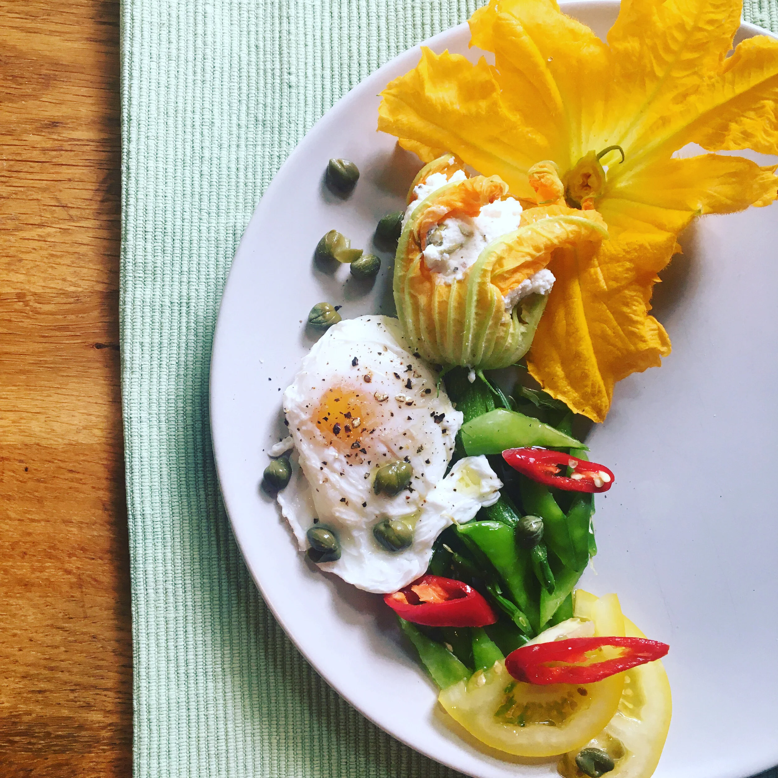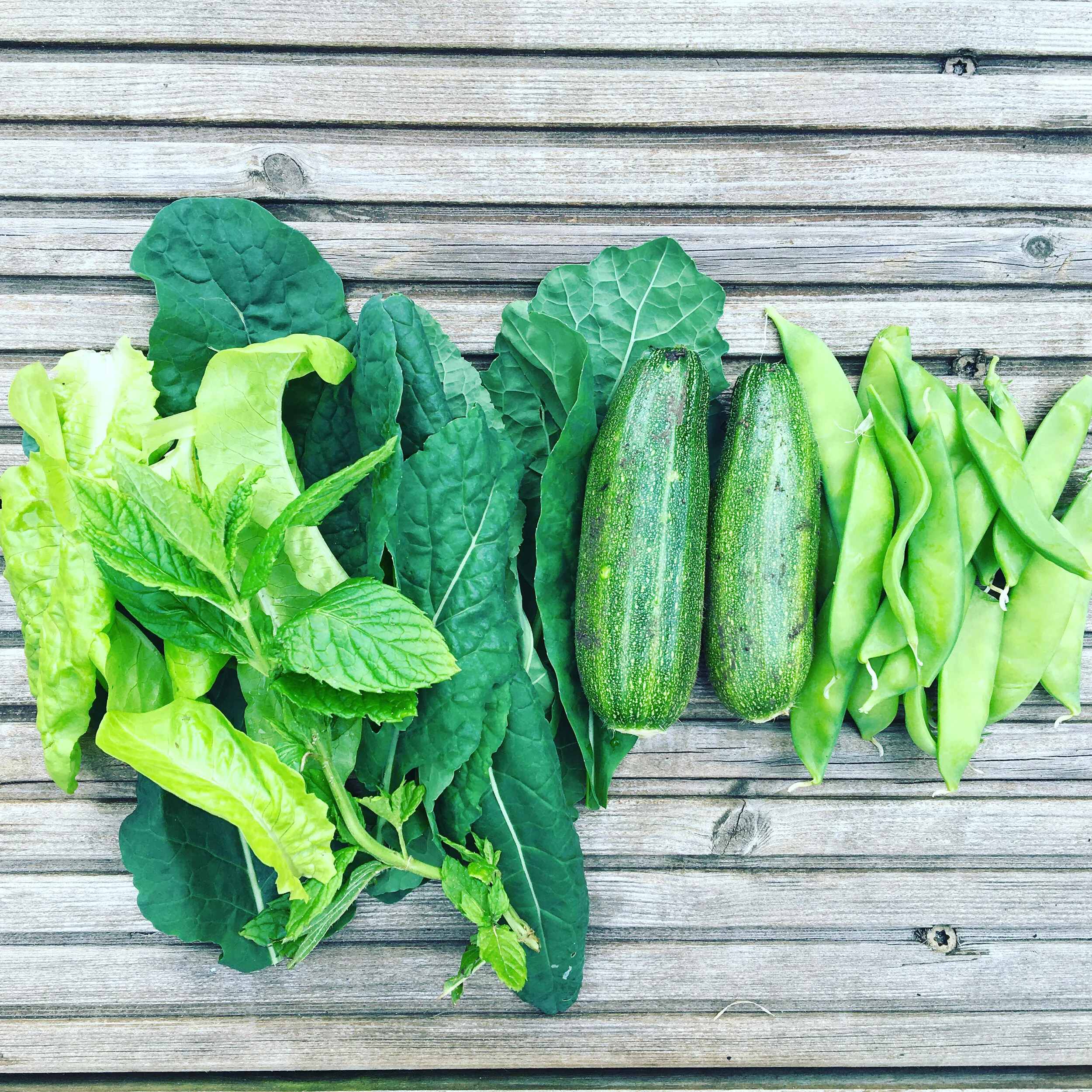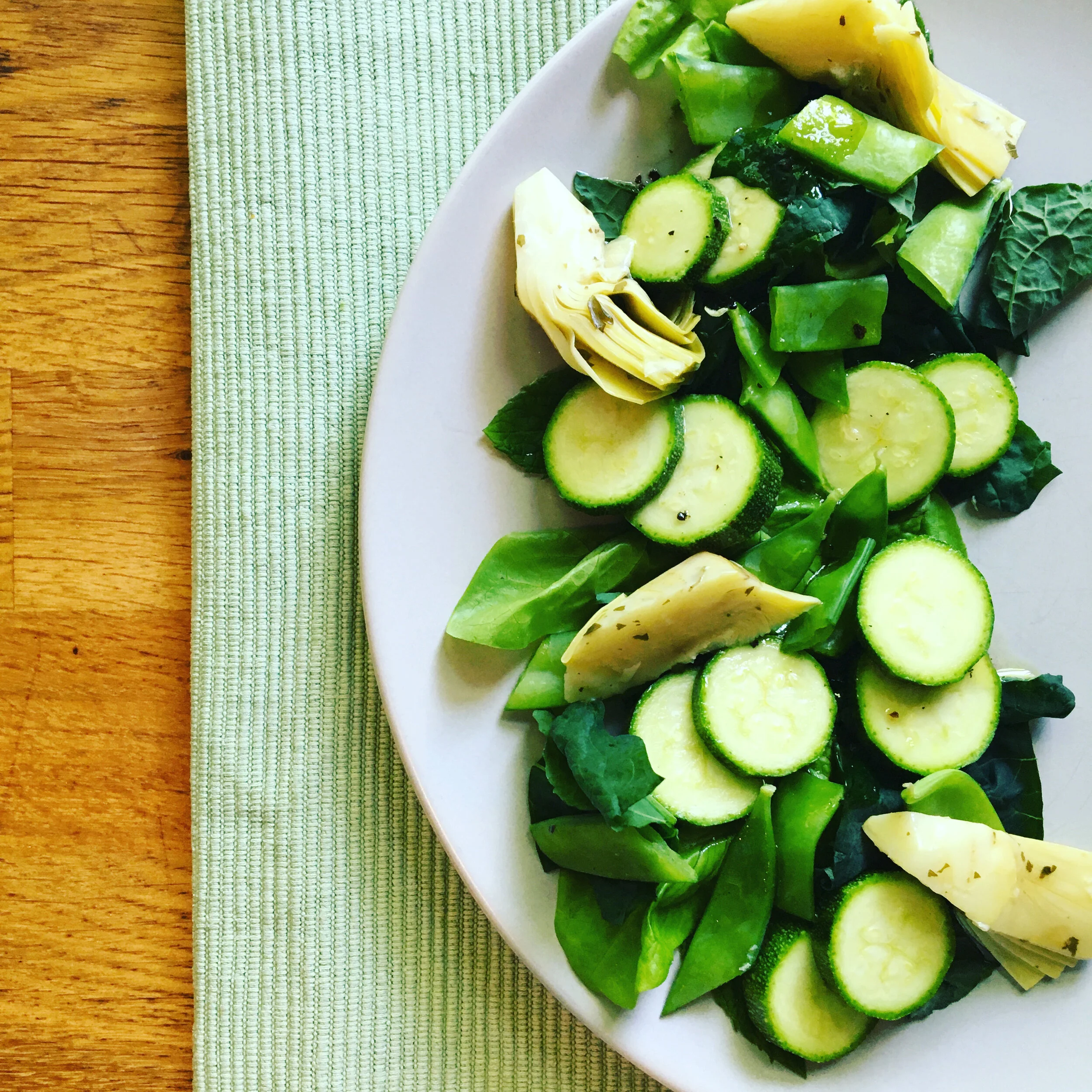 Baby Courgette, Sugar Snap, Kale and Artichoke Salad