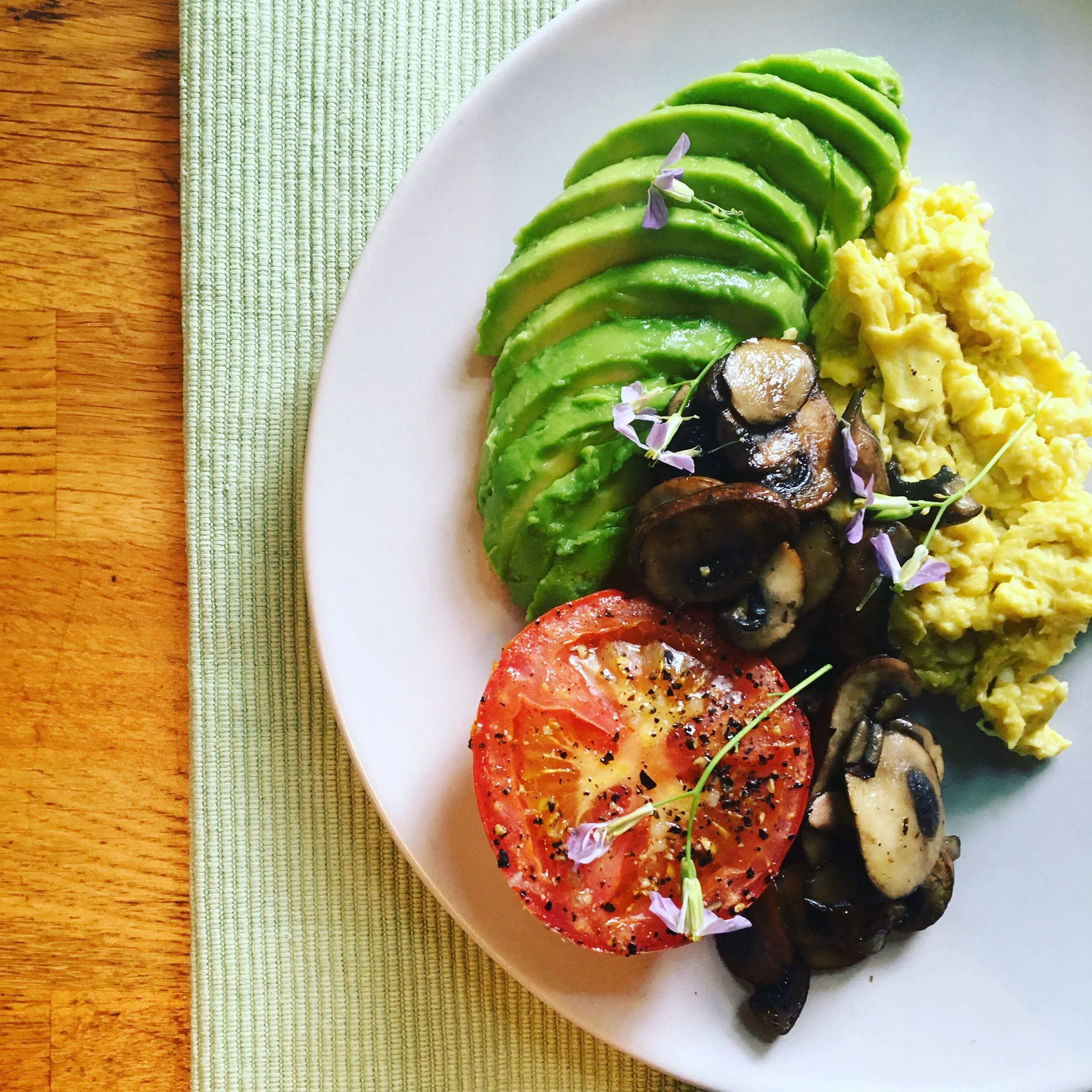 Avocado, grilled Tomato, Mushrooms and scrambled Eggs